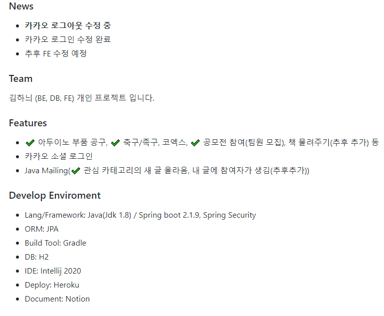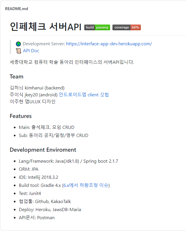 학업과 병행하면서 프로젝트 규모에 비해 장기 프로젝트가 돼버렸지만ㅎㅎ; 개인적으로 느낀 것도 많고 테스트 코드 관리에 많이 투자하면서 TDD에 관심 가게 해준 프로젝트라 이 점을 어필하기 위해 넣었다.